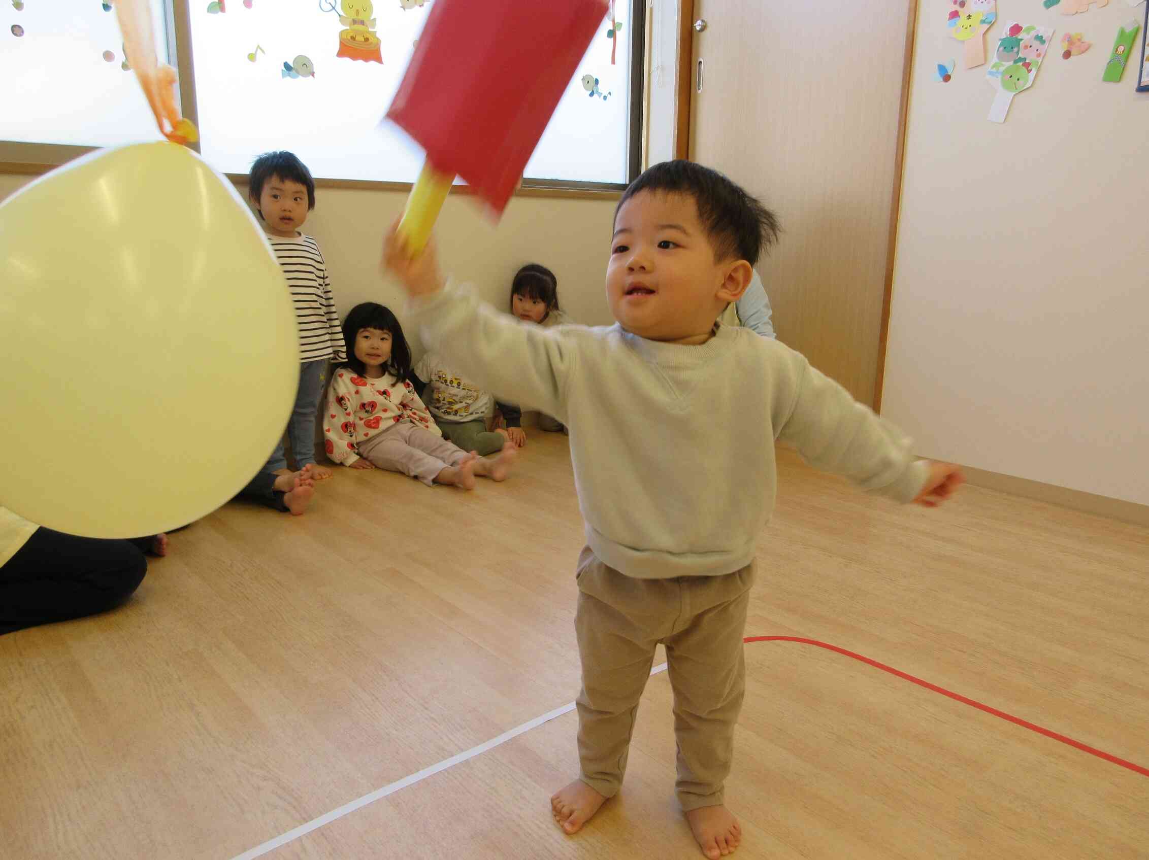 ふわふわと戻ってくる風船をよく見て打てました☆