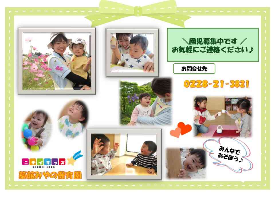 ニチイキッズ築館みやの保育園は認可小規模保育園です。0歳児から2歳児までのお子様をお預かりし、少ない人数を利点に人一人の歩みと、丁寧な保育を大切にしています。
