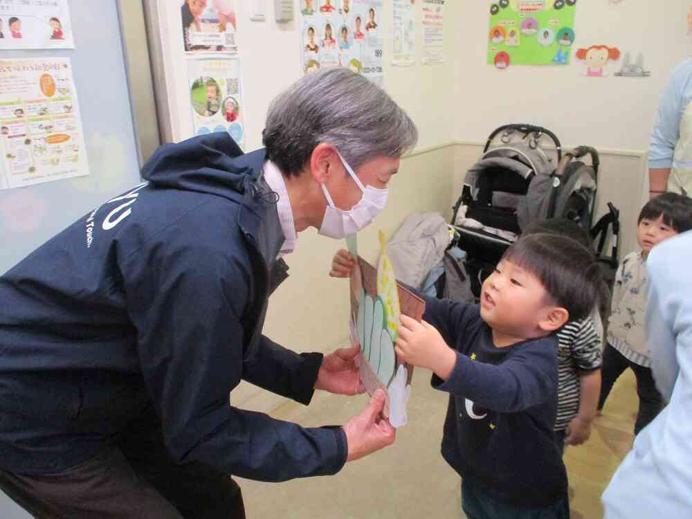 牛乳パックに手を入れて、「見てーっ、手袋♪」と楽しそうに見せてくれました。