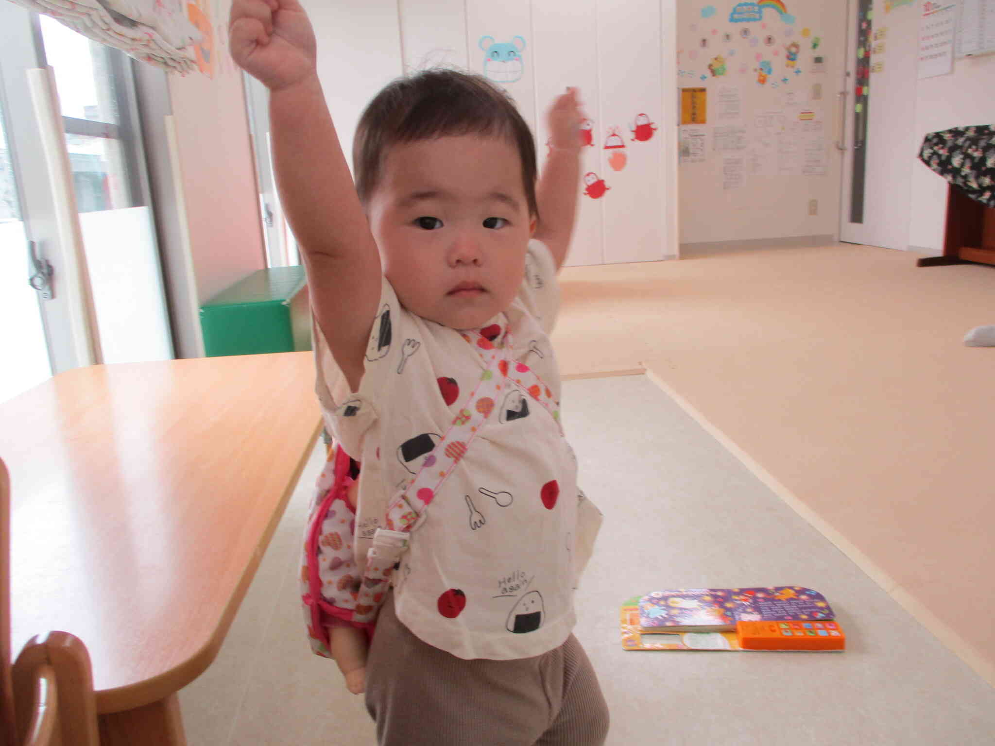 お人形をおんぶしている様子が可愛いかったのでカメラを向けると、何も言っていないのに手を挙げて万歳のポーズ、次は横にして飛行機のように、次は片足を上げて万歳をしたりサービス満点の対応でした。カメラのシャッター速度が遅くて捉えられずそれだけが残念でした。ユーモアがあっていつも楽しませてもらっています。