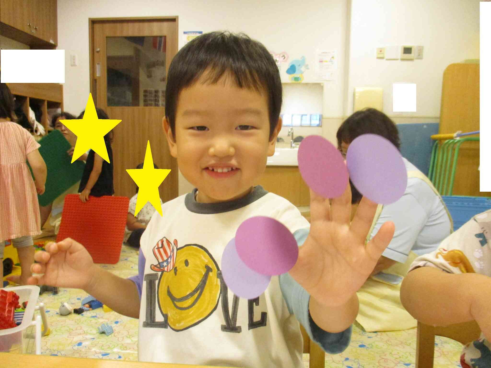 「見て~!」と指にもぶどうの実をたくさんつけたりと、楽しく製作に取り組みました♪