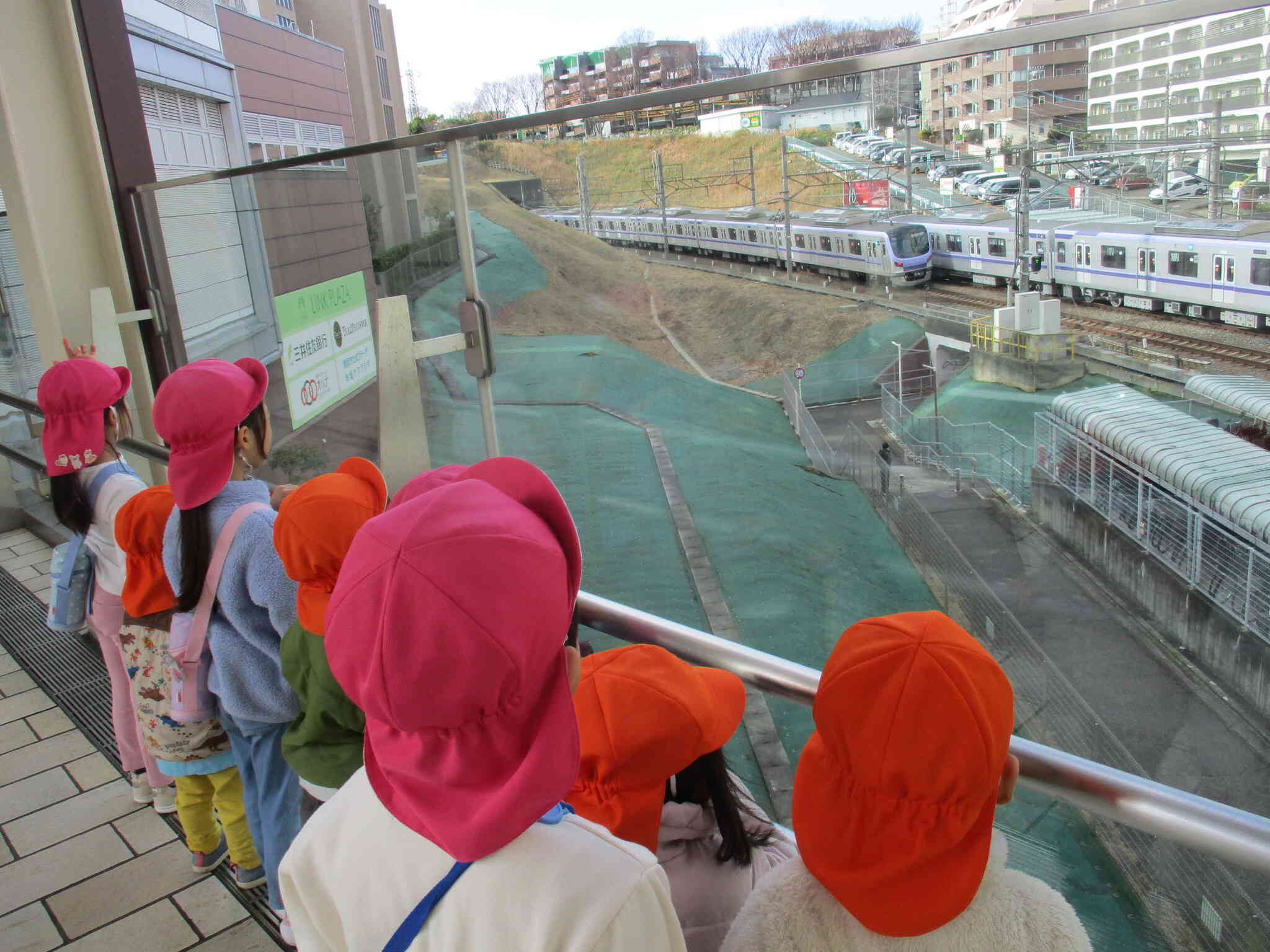 ツリーを見た後はホームの上から電車を見ました!中にはツリーよりも興奮している子もいました(笑)