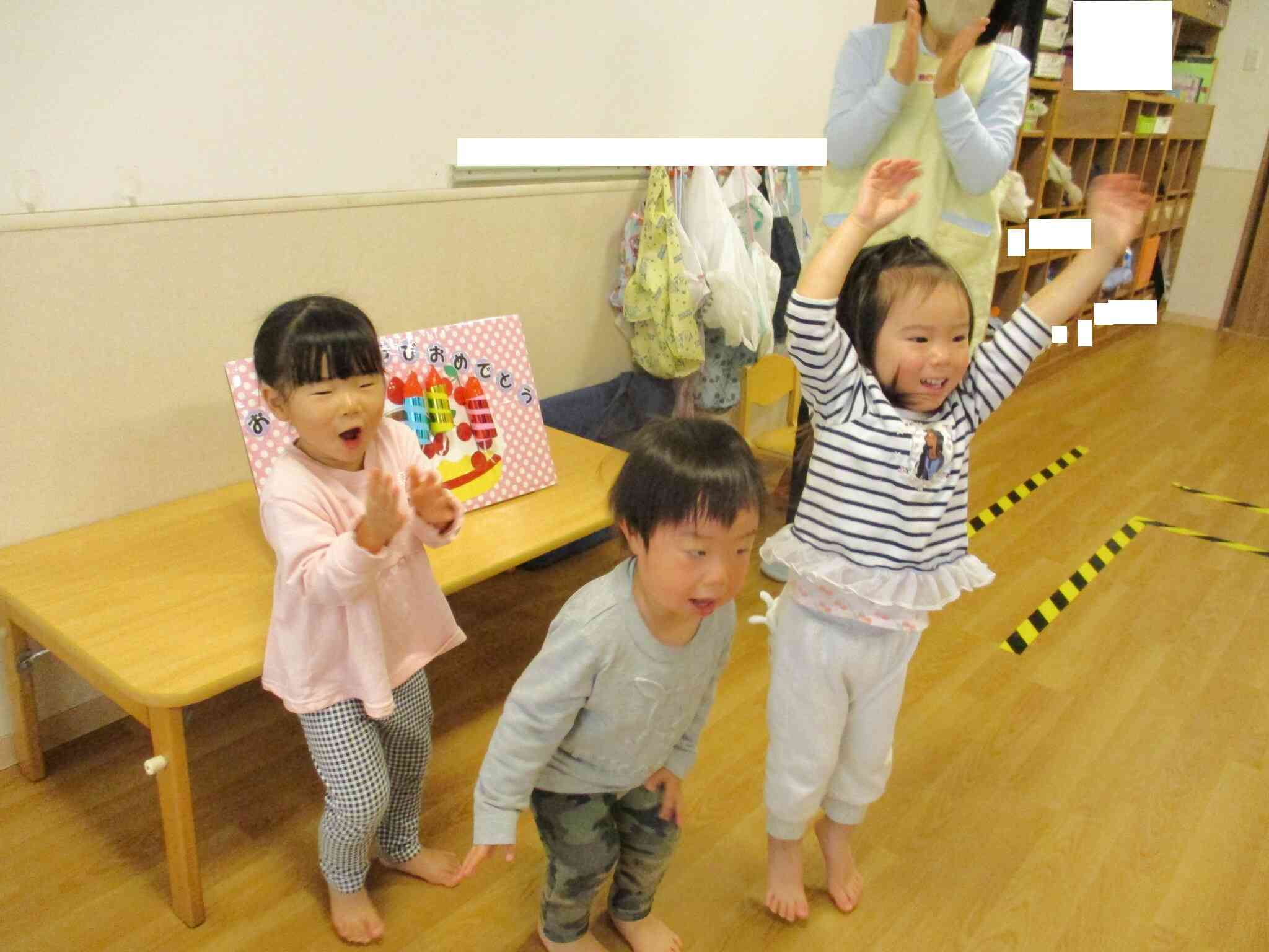 うさぎ組の12月の誕生児は3名でした。