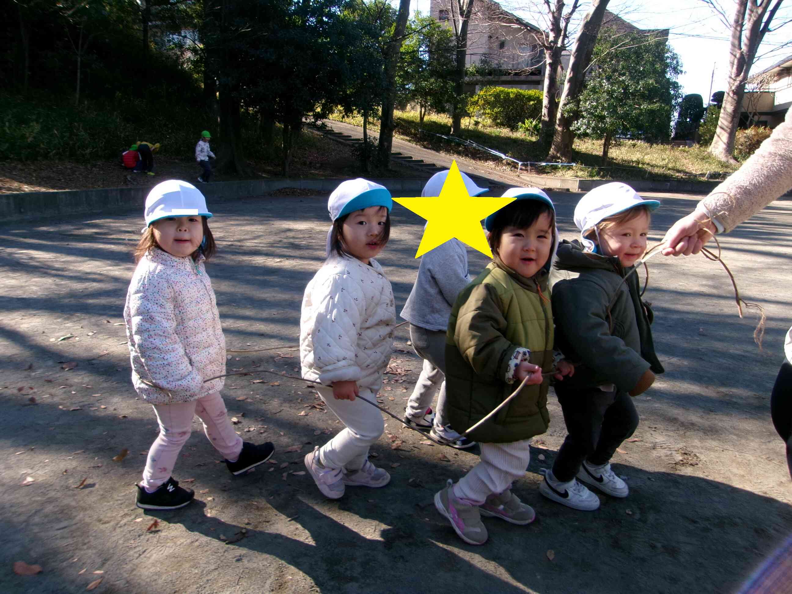 ながーーい、つるを見つけて…「みんな~、電車が出発するよ~!!」
