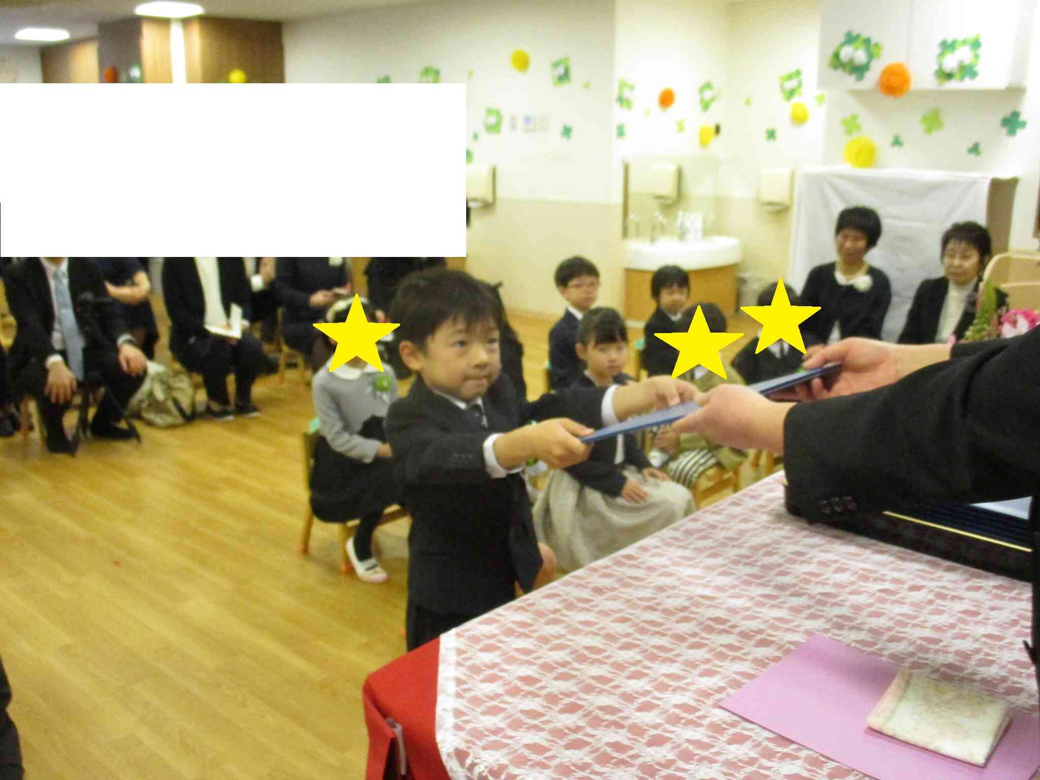 卒園証書授与の様子です。しっかりと両手で受け取り、堂々と歩いていましたよ!