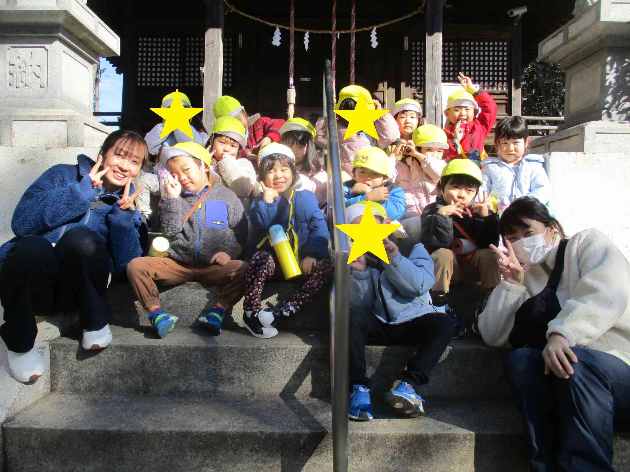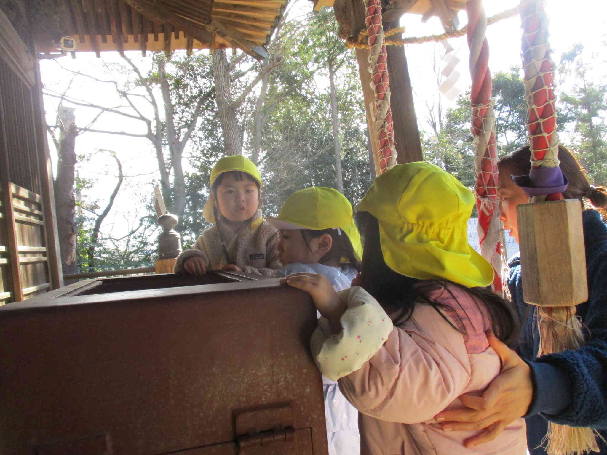 この日は3歳児りす組さんと2歳児うさぎ組さんで近隣の神社に行き初詣をしました!