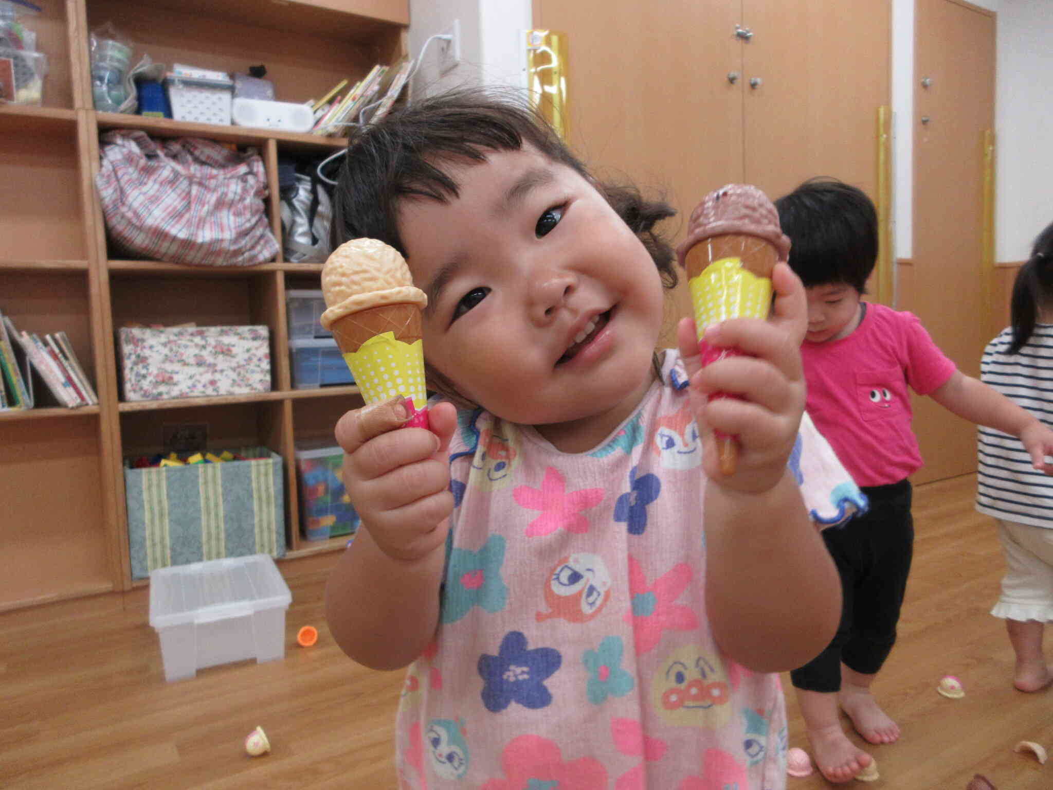 アイス屋さんになりきってニコニコです!