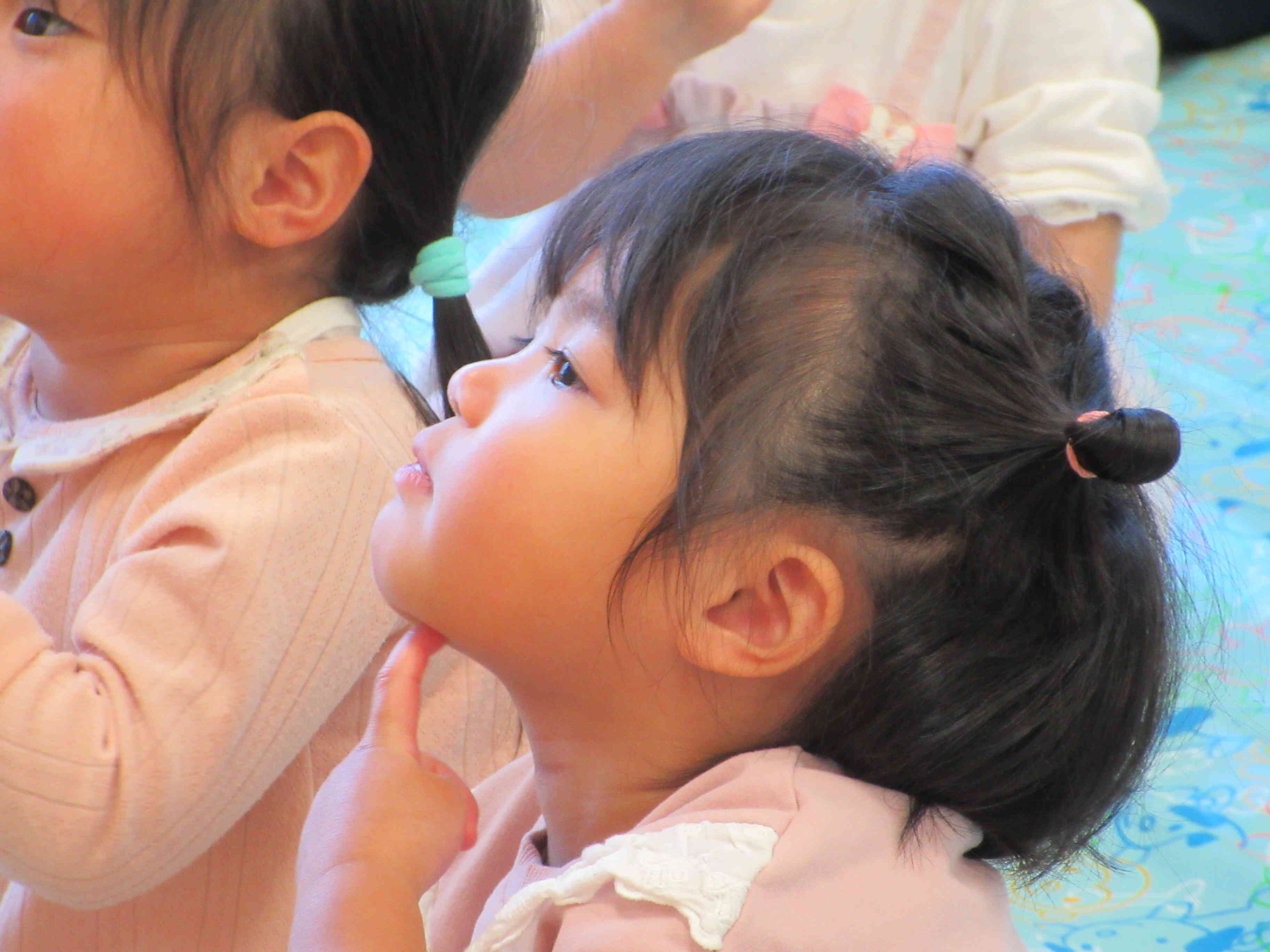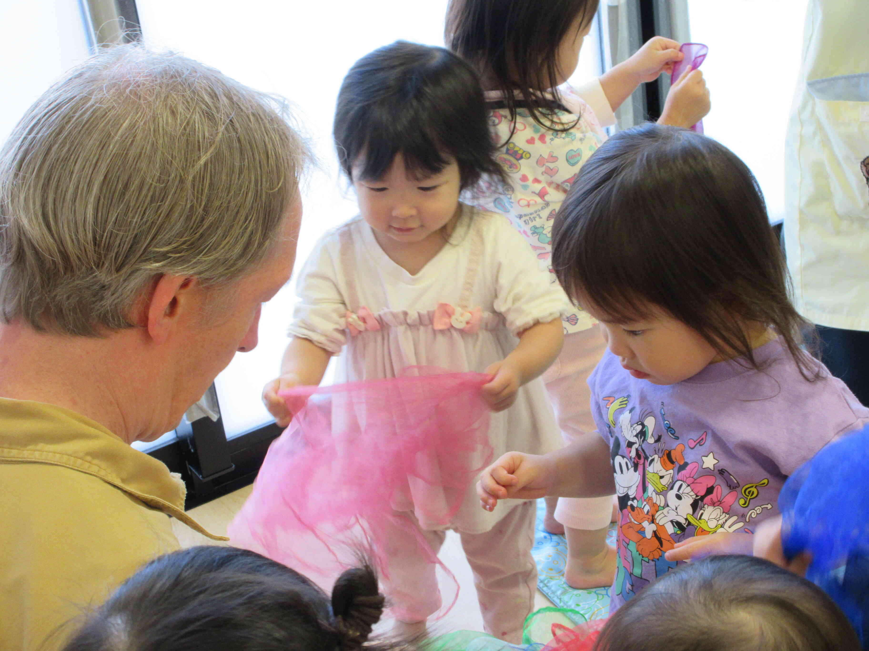 英語でのお話ですが、絵を見たり、インストラクターの声の抑揚で、内容がわかっている子ども達です。