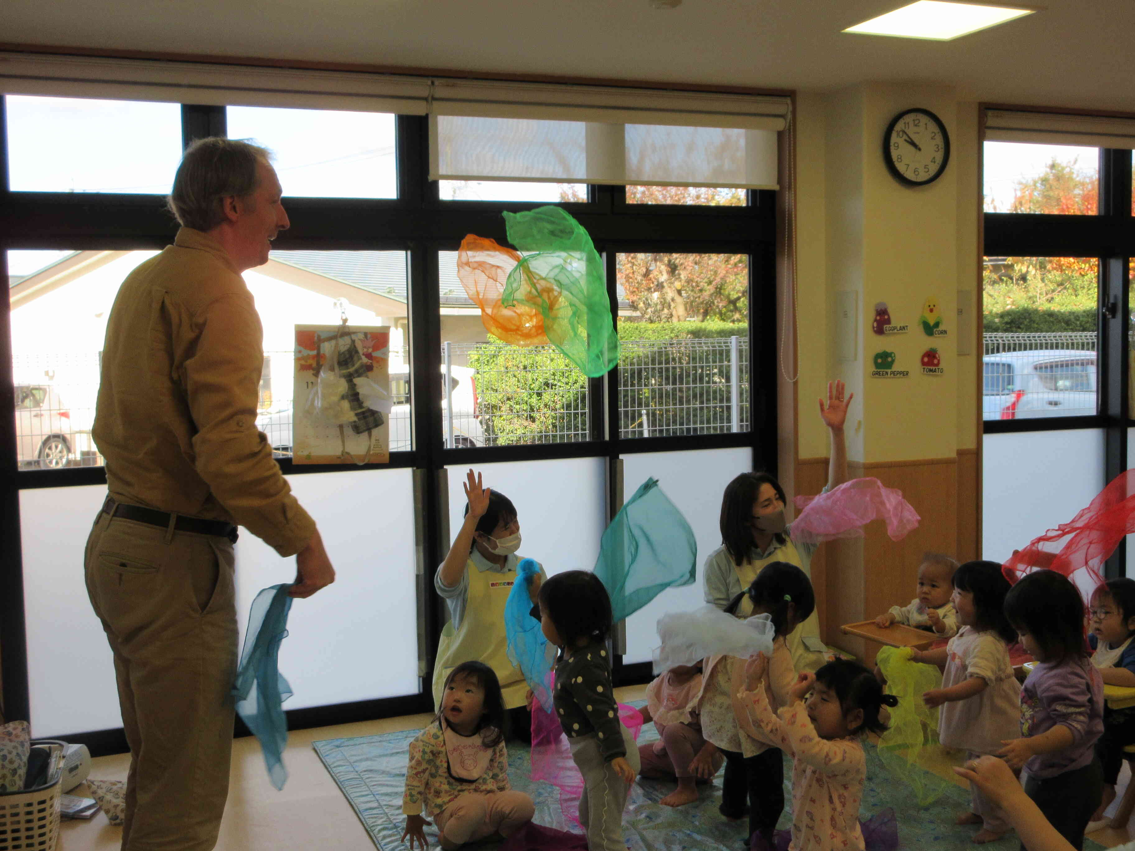 高く上がったスカーフのゆらゆら・ふわふわに大喜びの子ども達です。