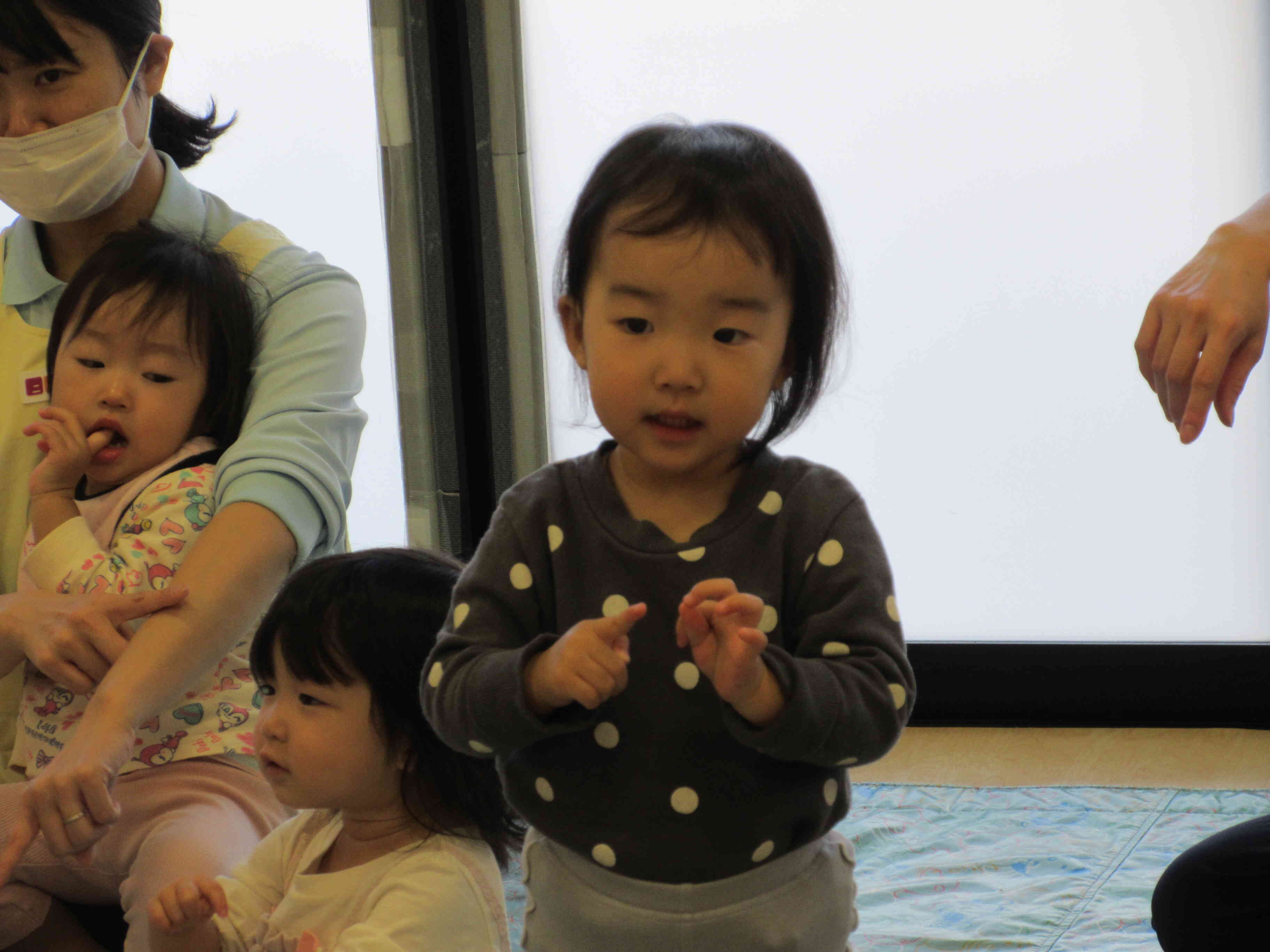 ひよこ組(0歳児)とあひる組(1歳児)合同英語教室です。