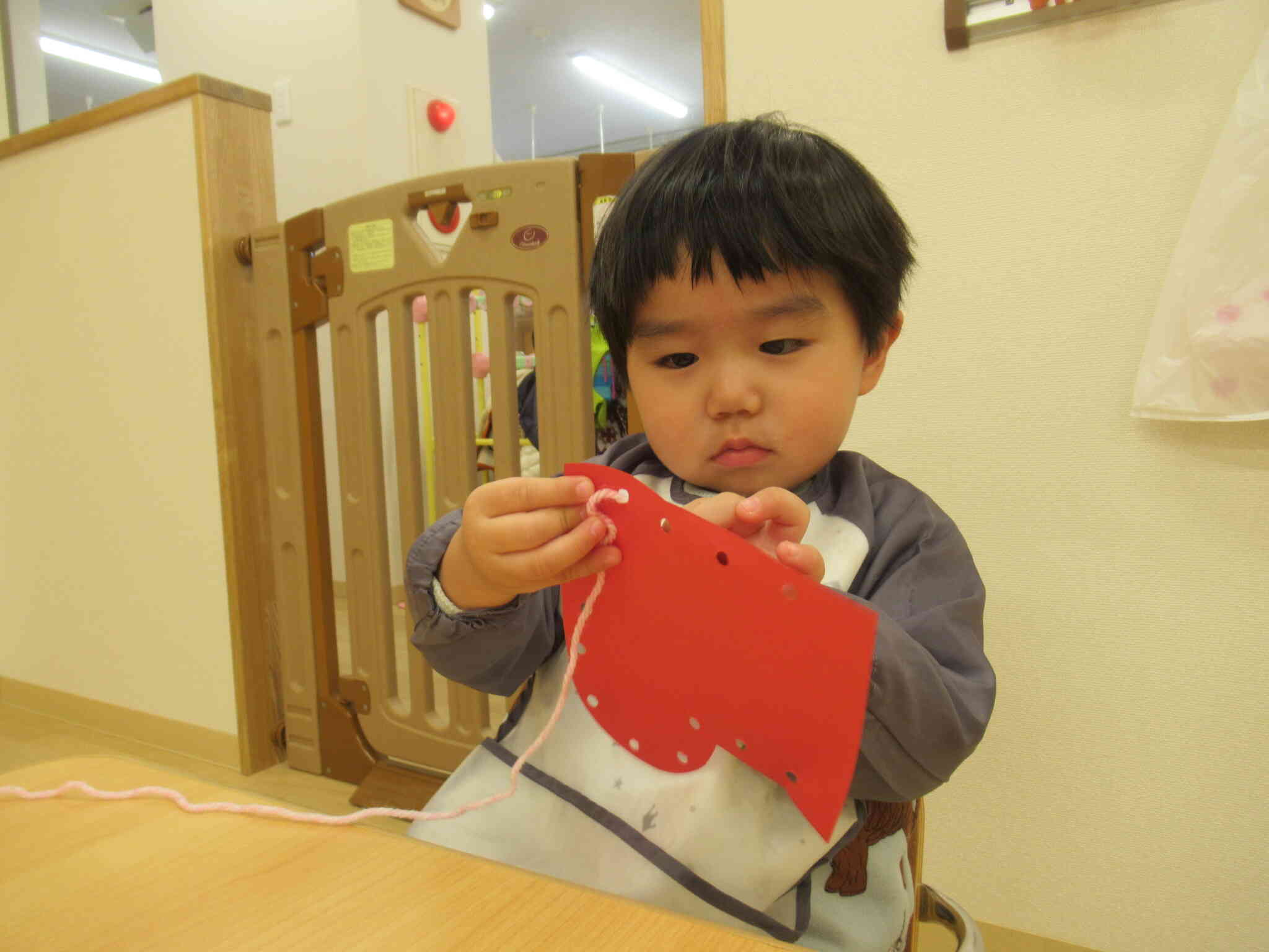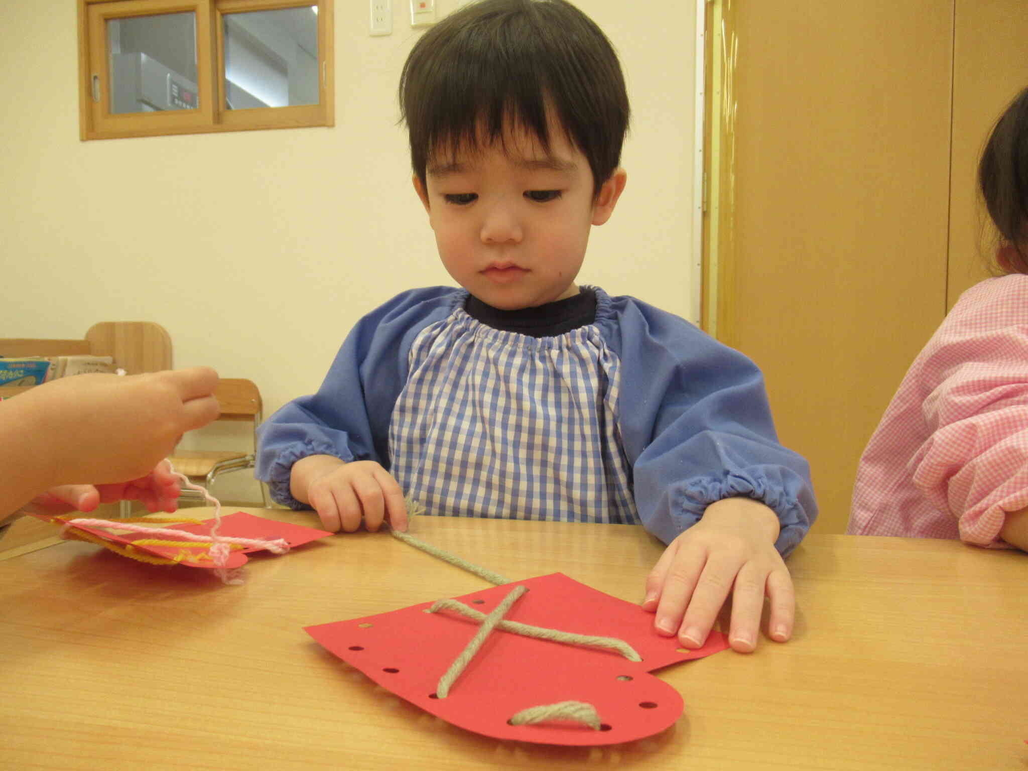 上手く通せなくても最後まで諦めないで挑戦する姿、手先を上手に動かして取り組む姿から成長が感じられました。