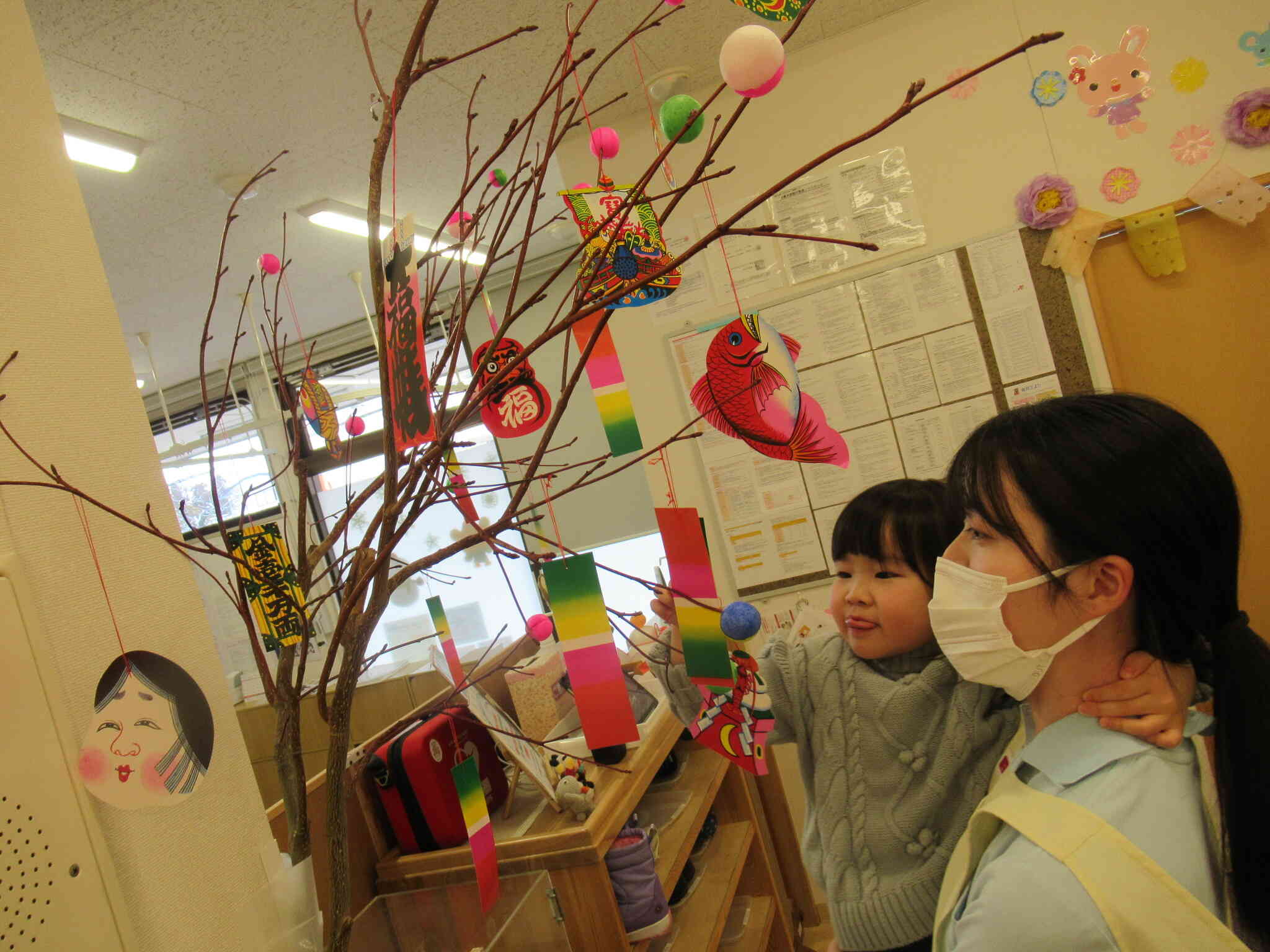 好きな飾りを選び、先生と一緒に枝に掛けると「出来たよ!」と満足そうにしていました。