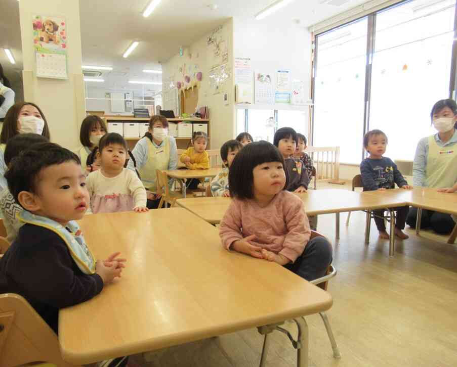 保育者がだんご木についての話をすると真剣な表情で聞き、「だんご!」「(鏡餅の飾りは)玄関にあるのと一緒だ!」と反応していた姿が印象的でした。