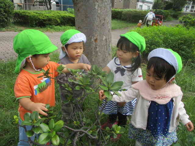 1歳児クラスさんは、可愛いい実が成っている木を発見!