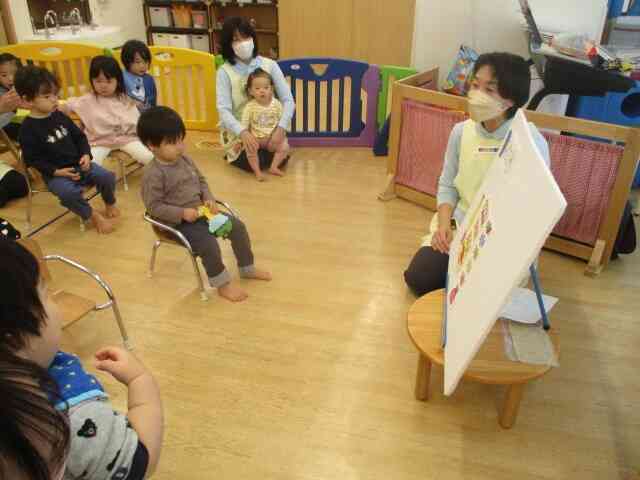 先生からのプレゼントの出し物はパネルシアター”でてこい、でてこい!”です