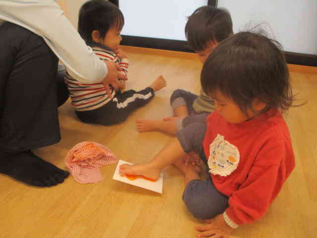 こちらは、足形スタンプを取っている1歳児クラスさんです!