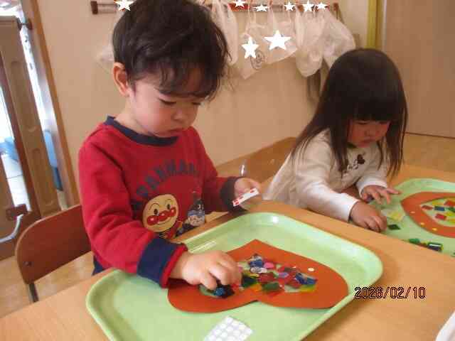 2歳児クラスさんもセロハンを上手に貼っていますよ~
