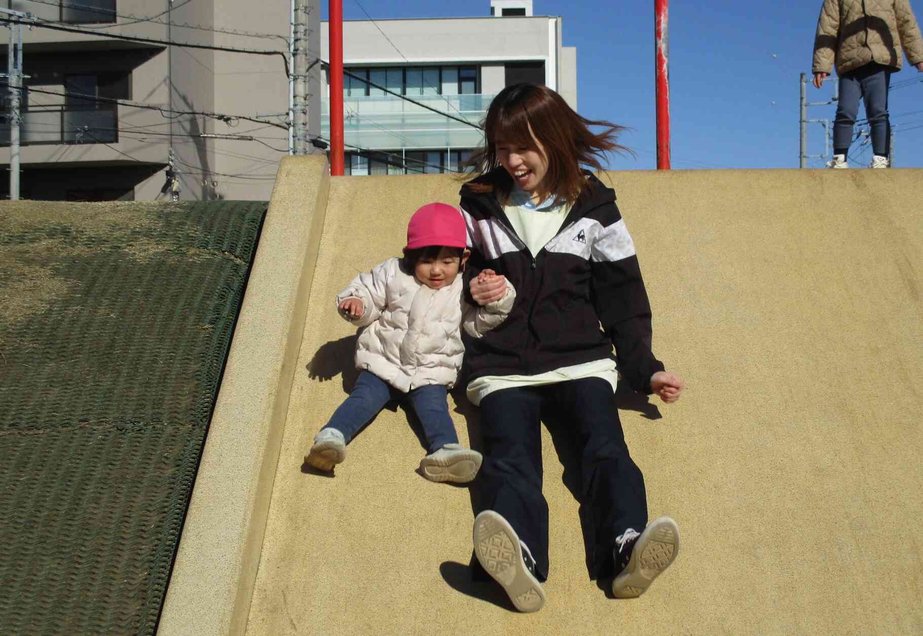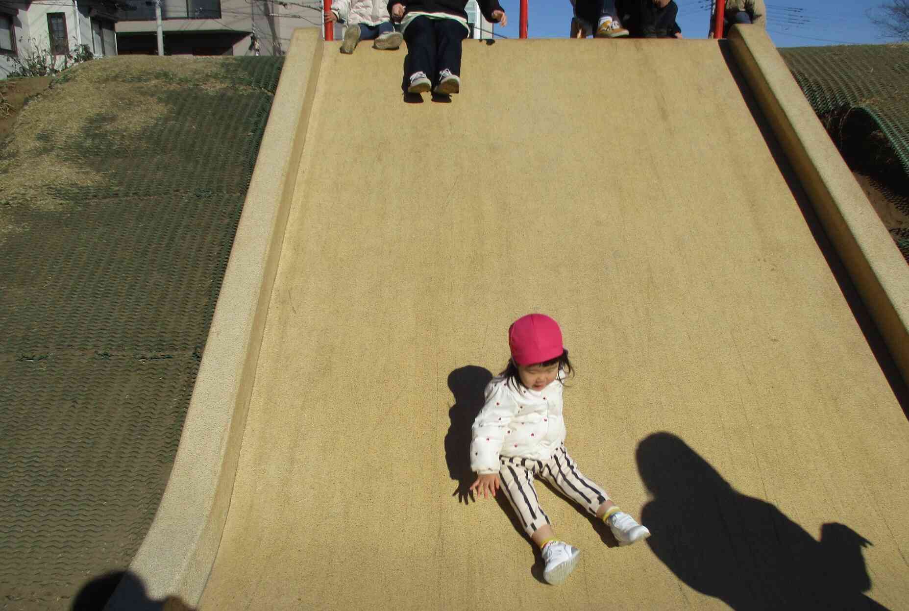公園では先生と滑り台をしました。