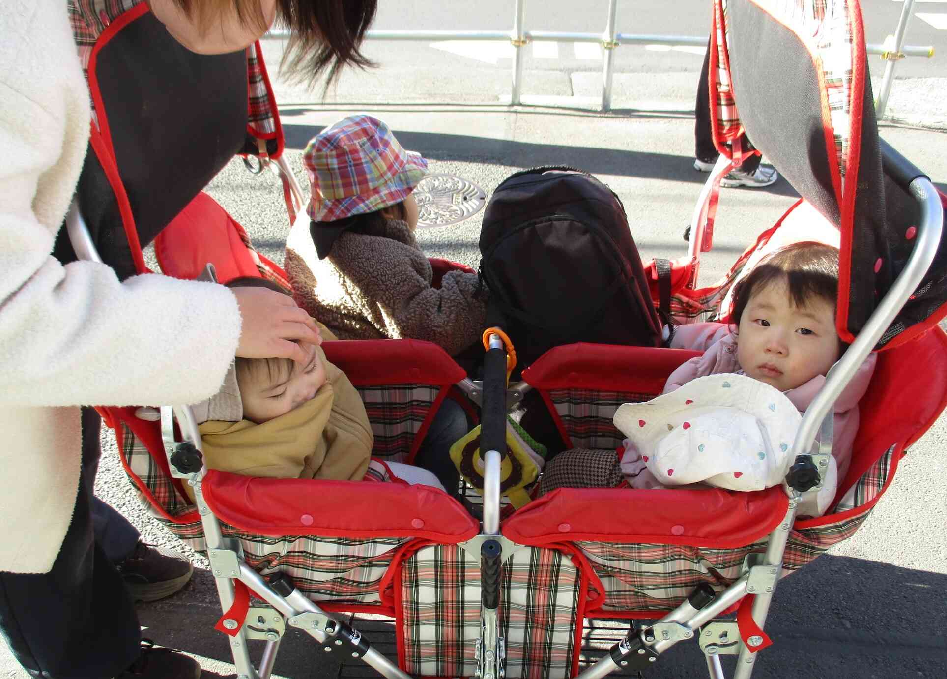 ひよこ組のお友だちはカートでゆったり帰りました。