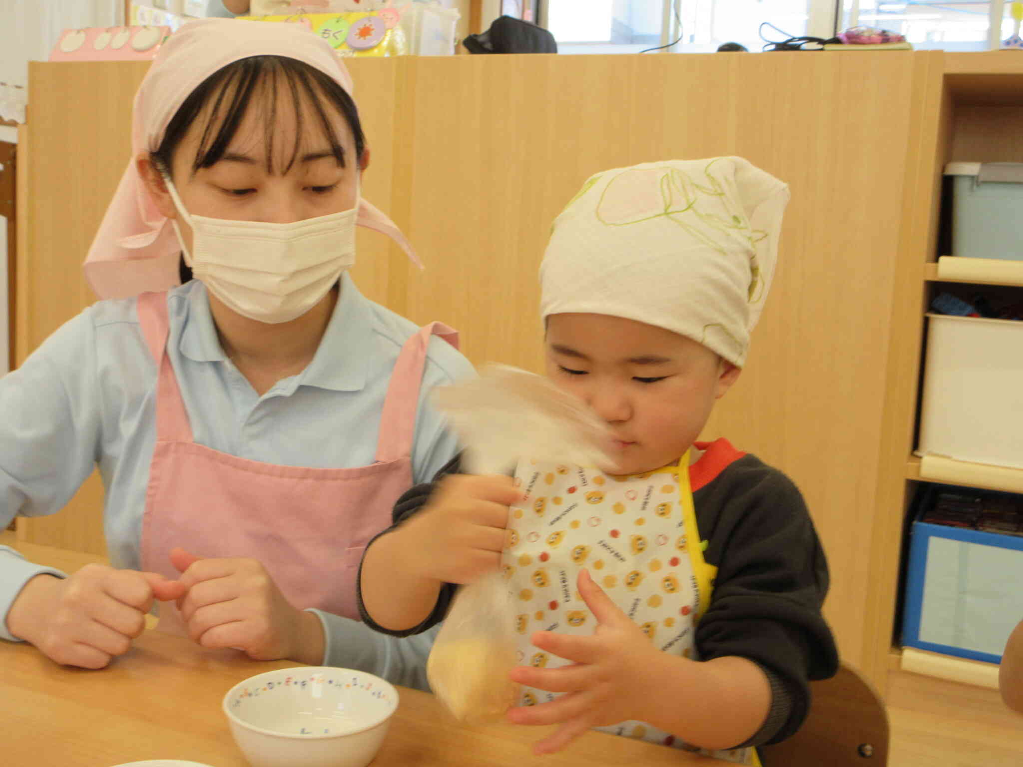 ひよこ組さんも手作りの、きな粉おはぎをたべました