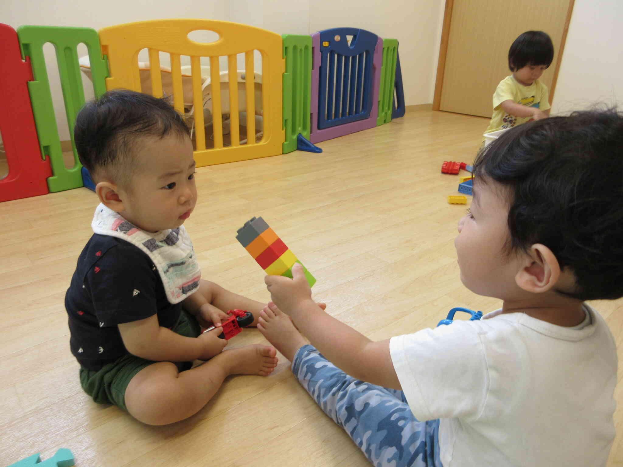 「あーなたのおなまえは?」と歌いながらお友達にインタビューをするSくん。