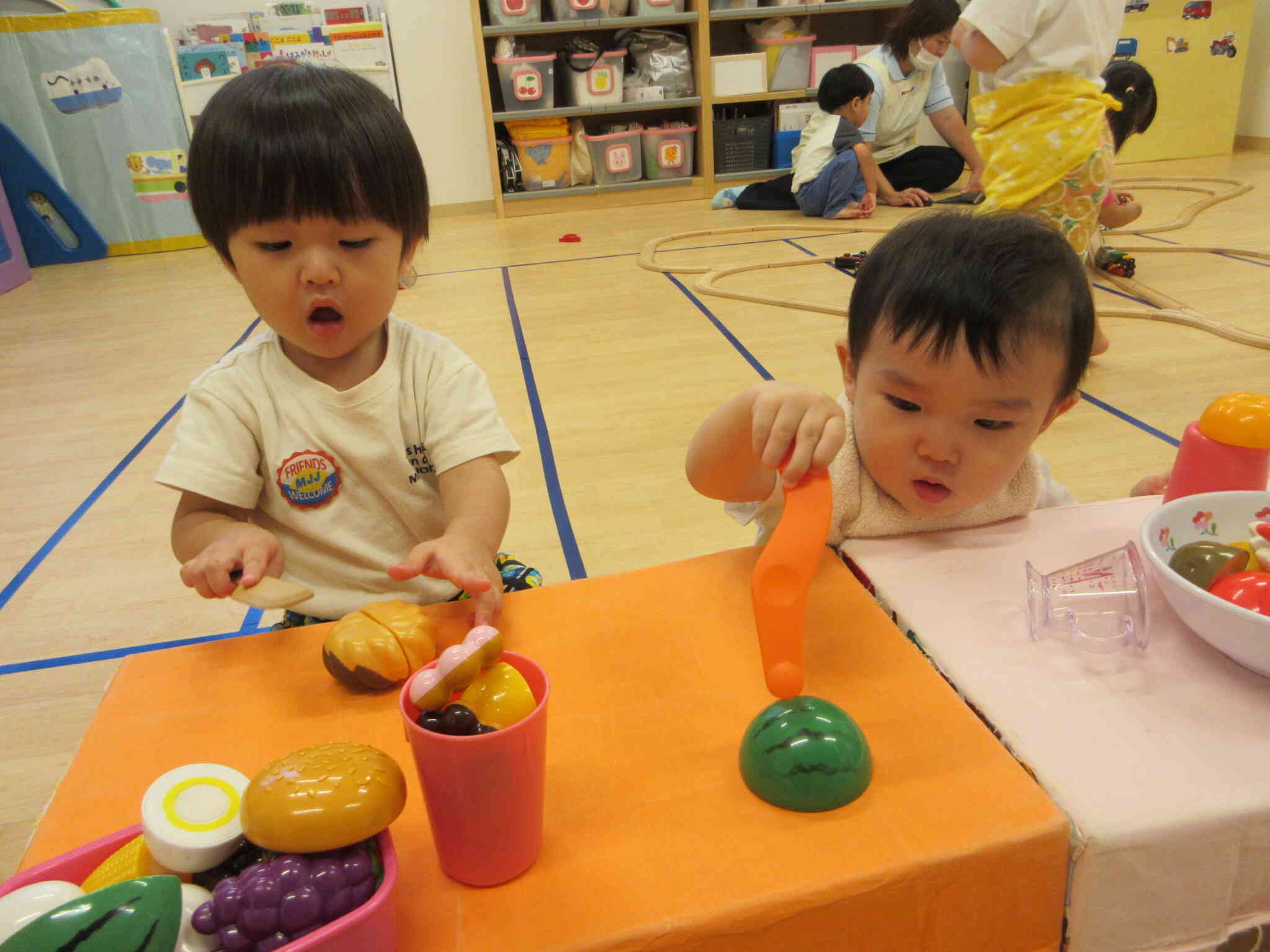 0歳のお友達とも仲良くクッキングをしているようです。