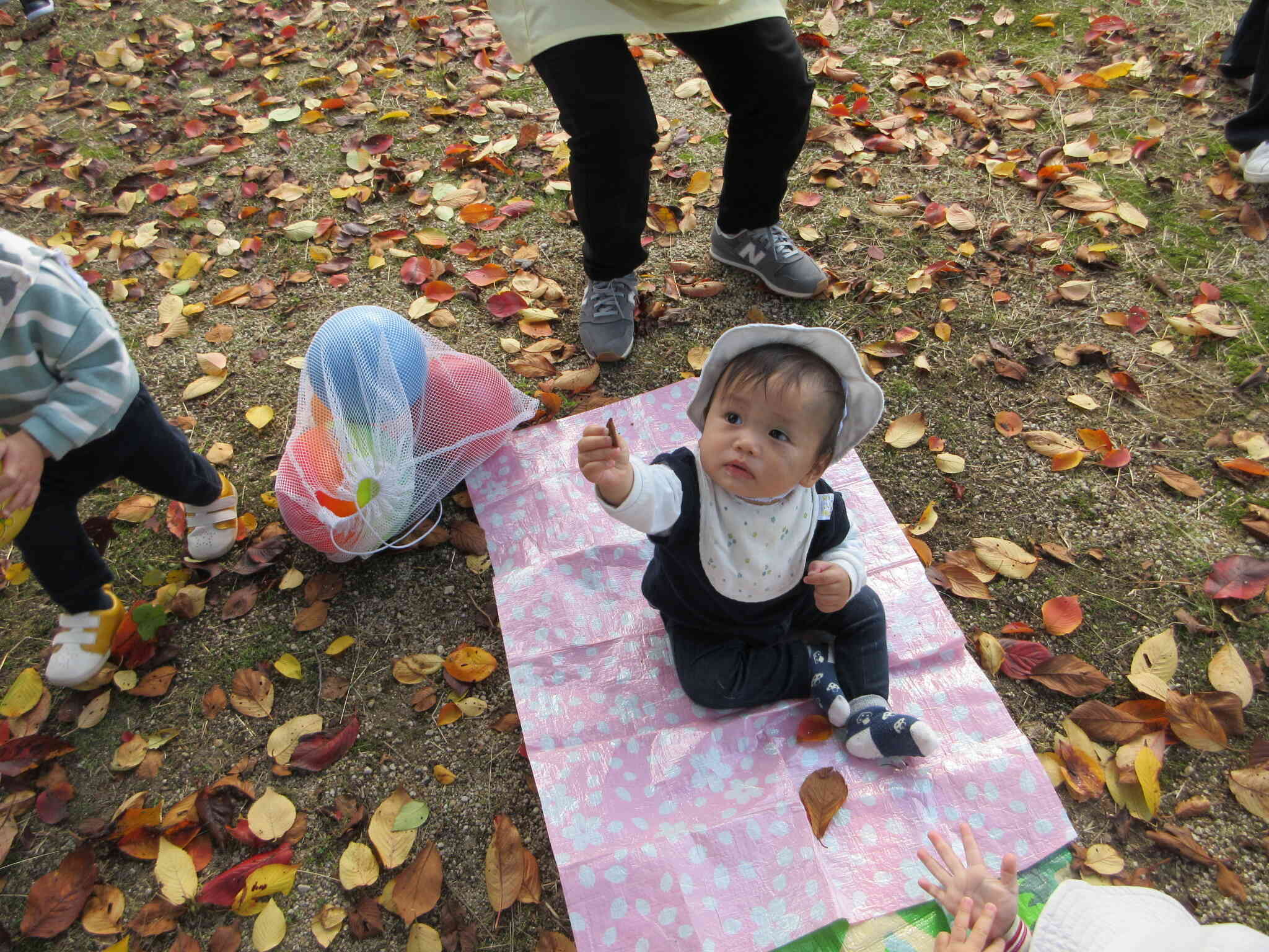 落ち葉拾いをしたり、葉っぱのじゅうたんの上を歩いてフワフワとした感触を楽しんだりしました。
