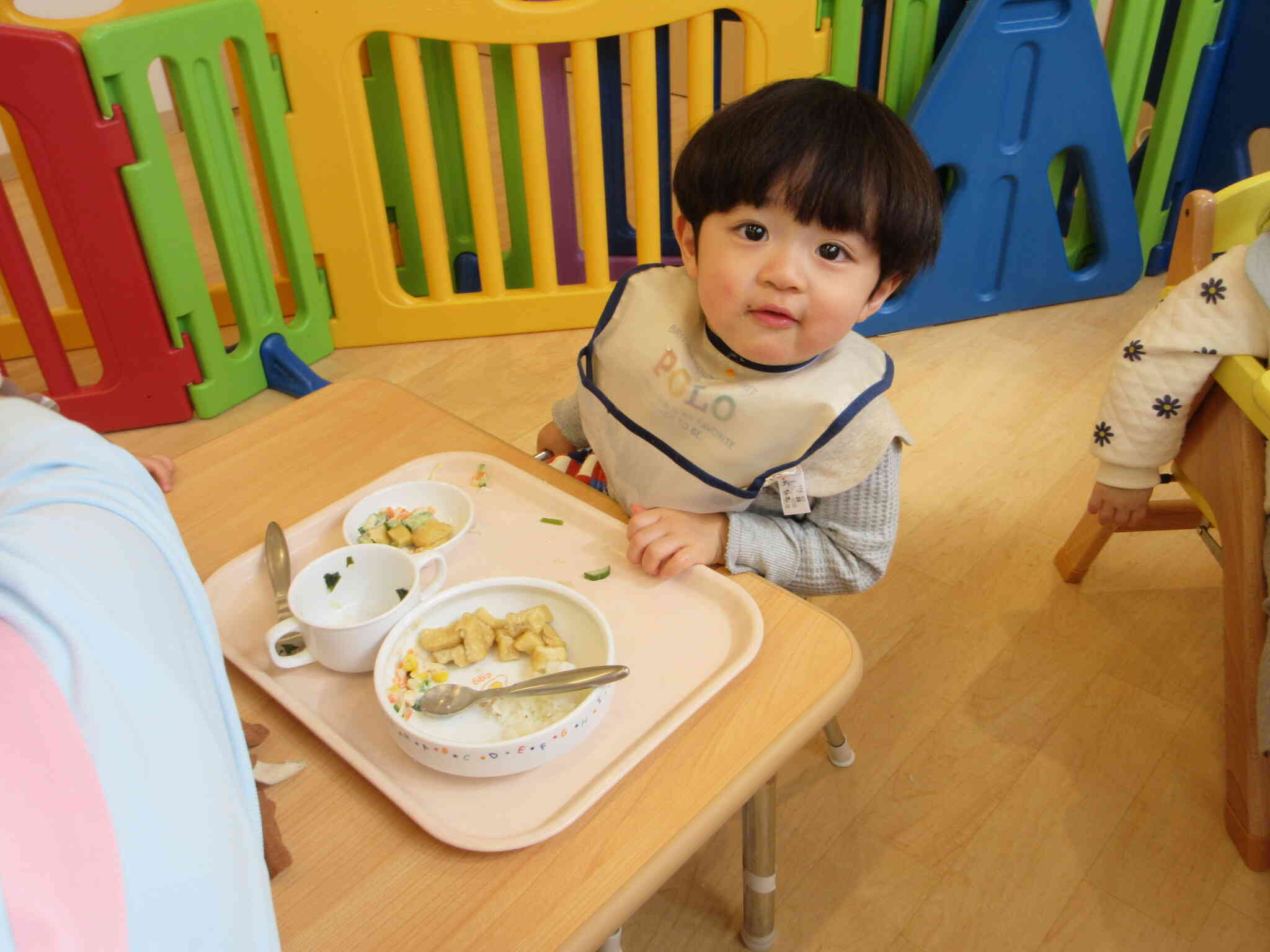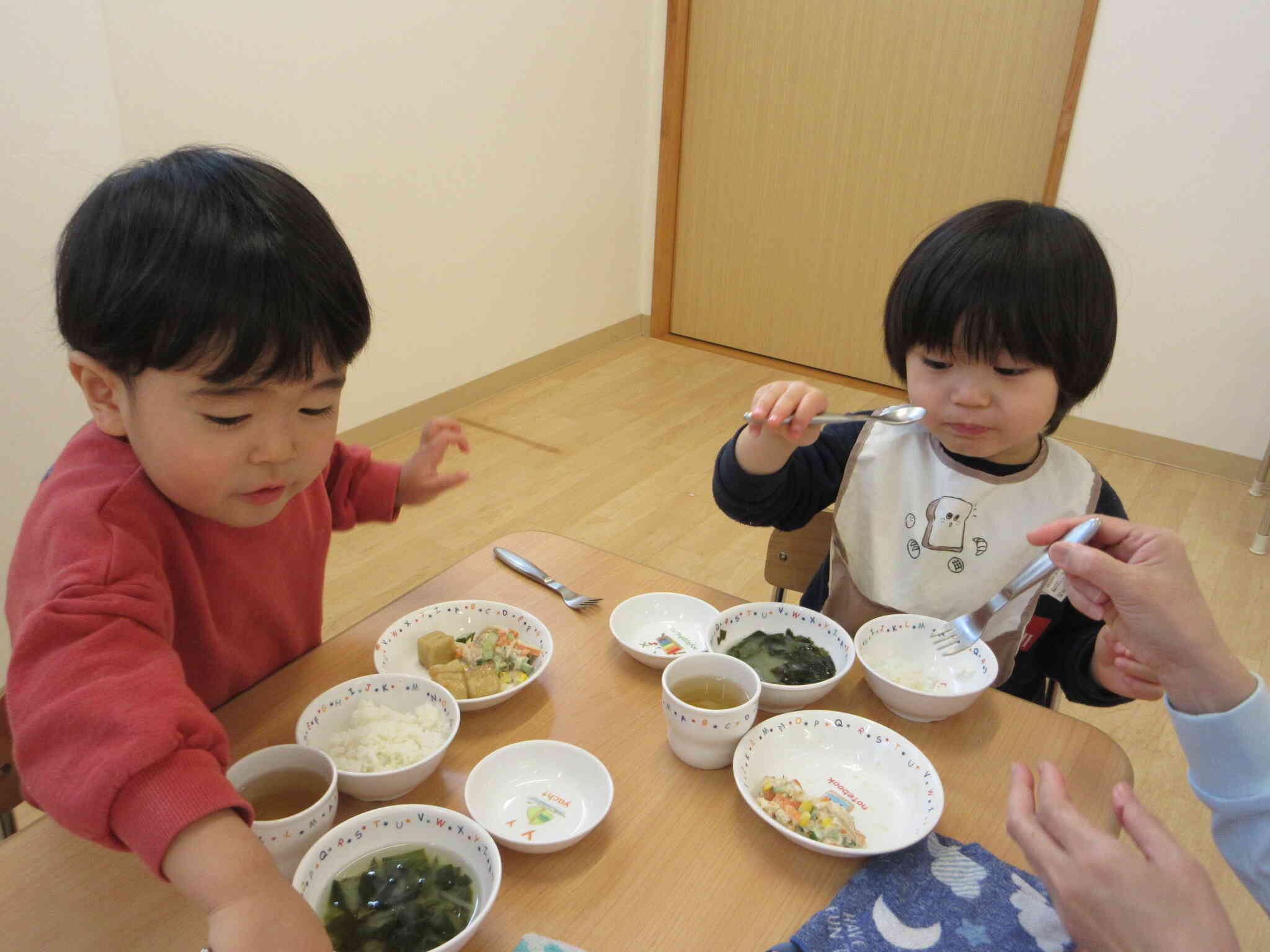 うさぎ組は、自分で食具を持ち上手に食べ進めていました。