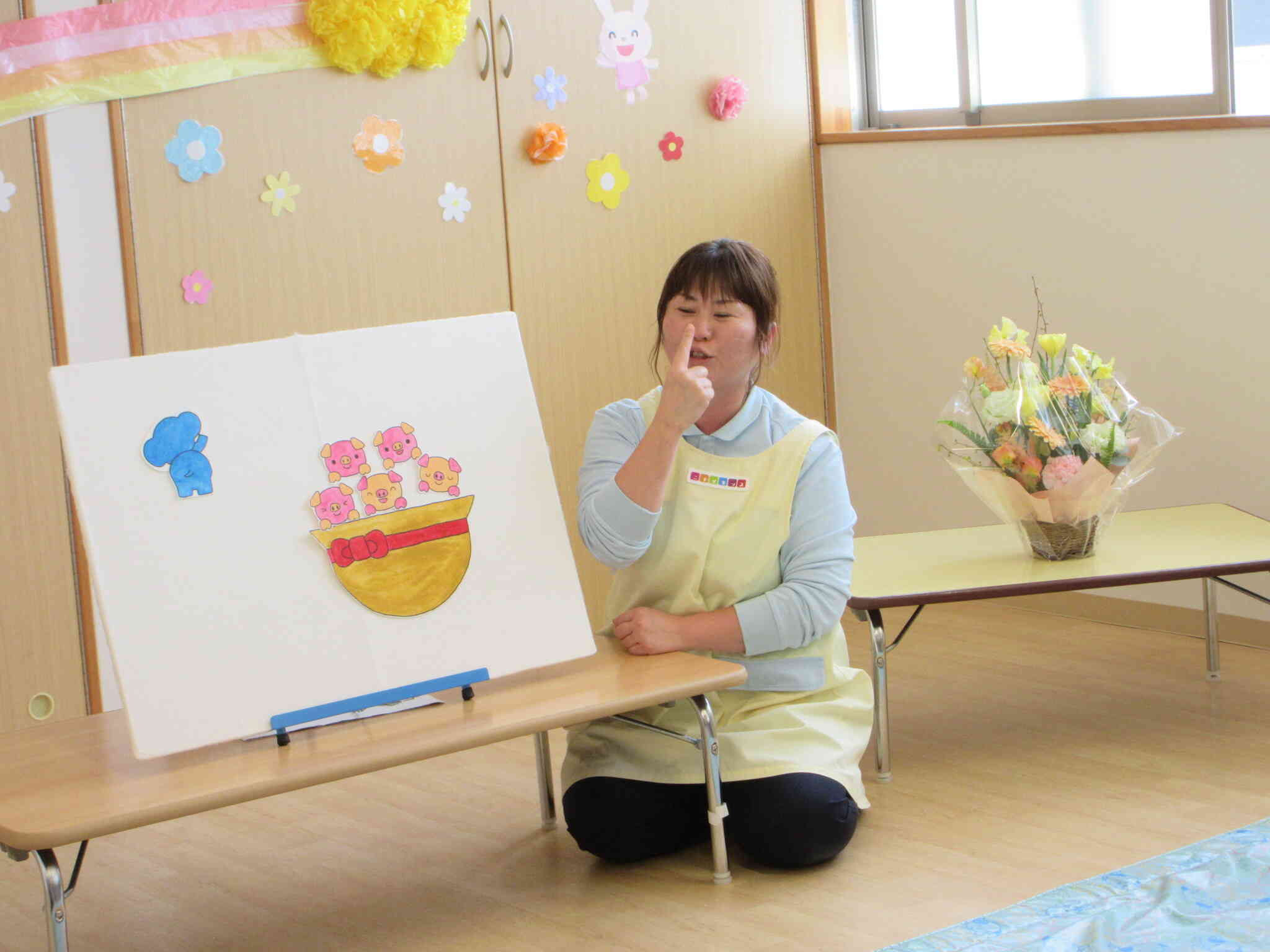 こどもたち一人一人の名前を呼ぶと、みんな元気に返事をしてくれました。