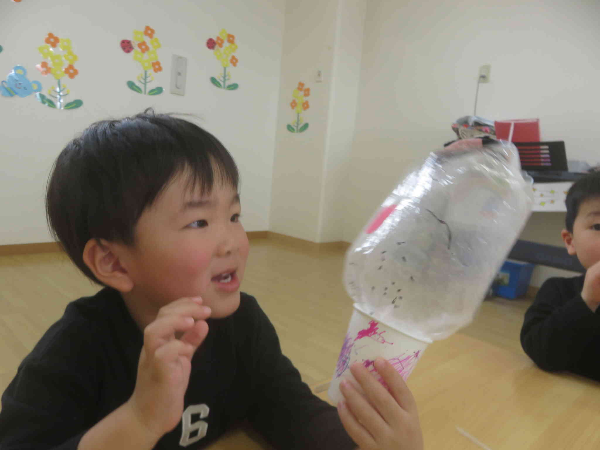 紙コップに自由にお絵描きをしました。