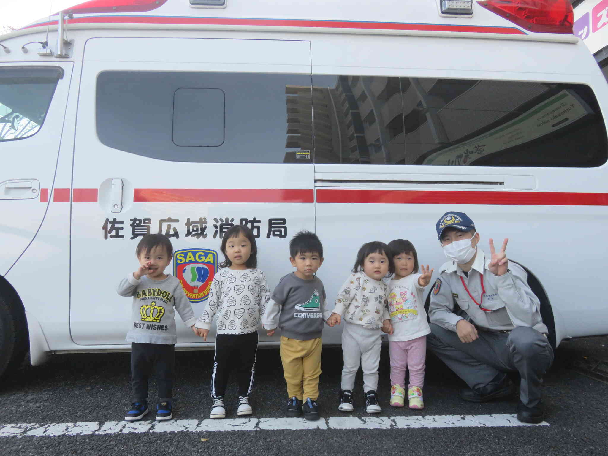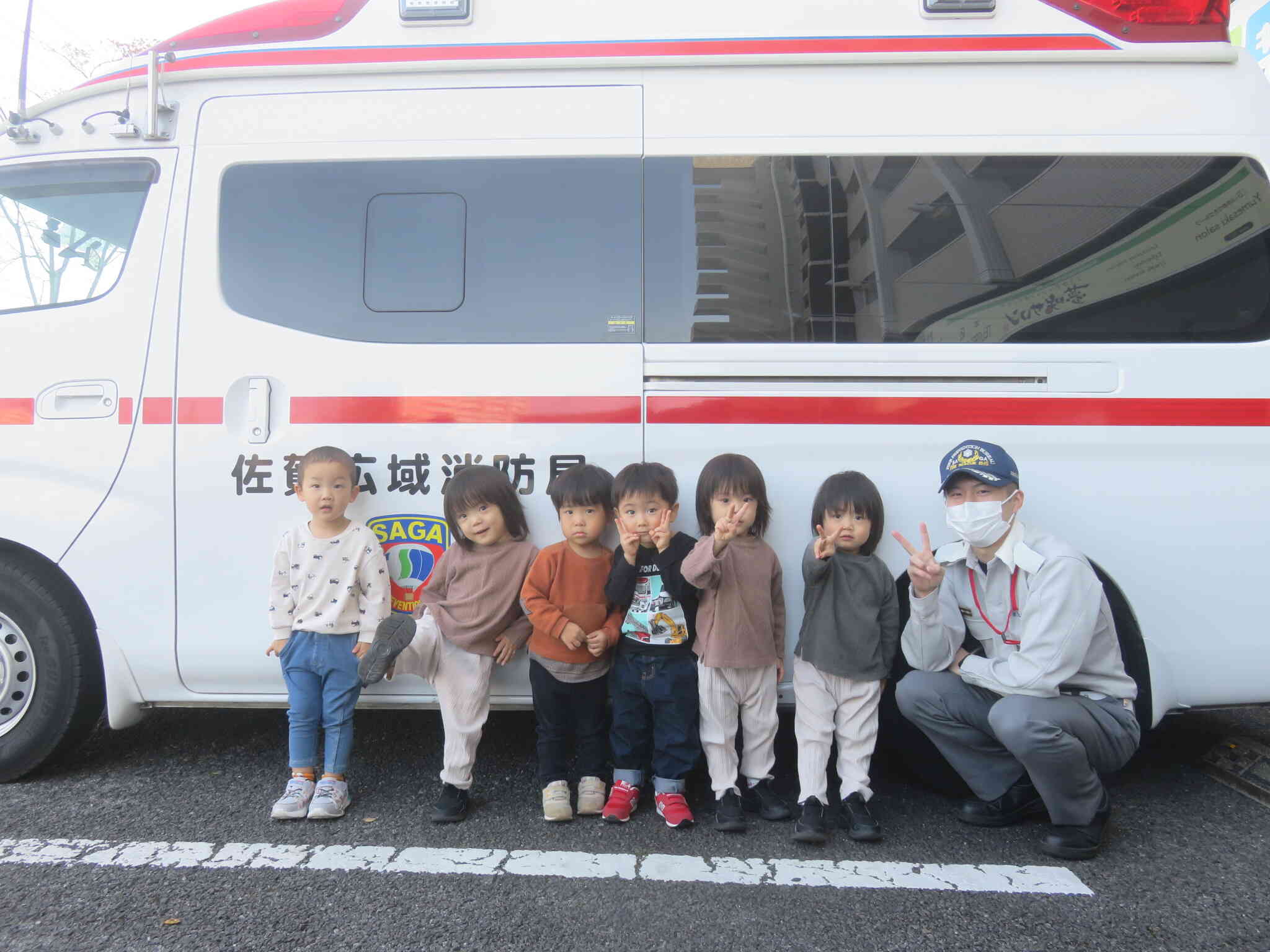 訓練の後は、皆が大好きな救急車に乗ったり