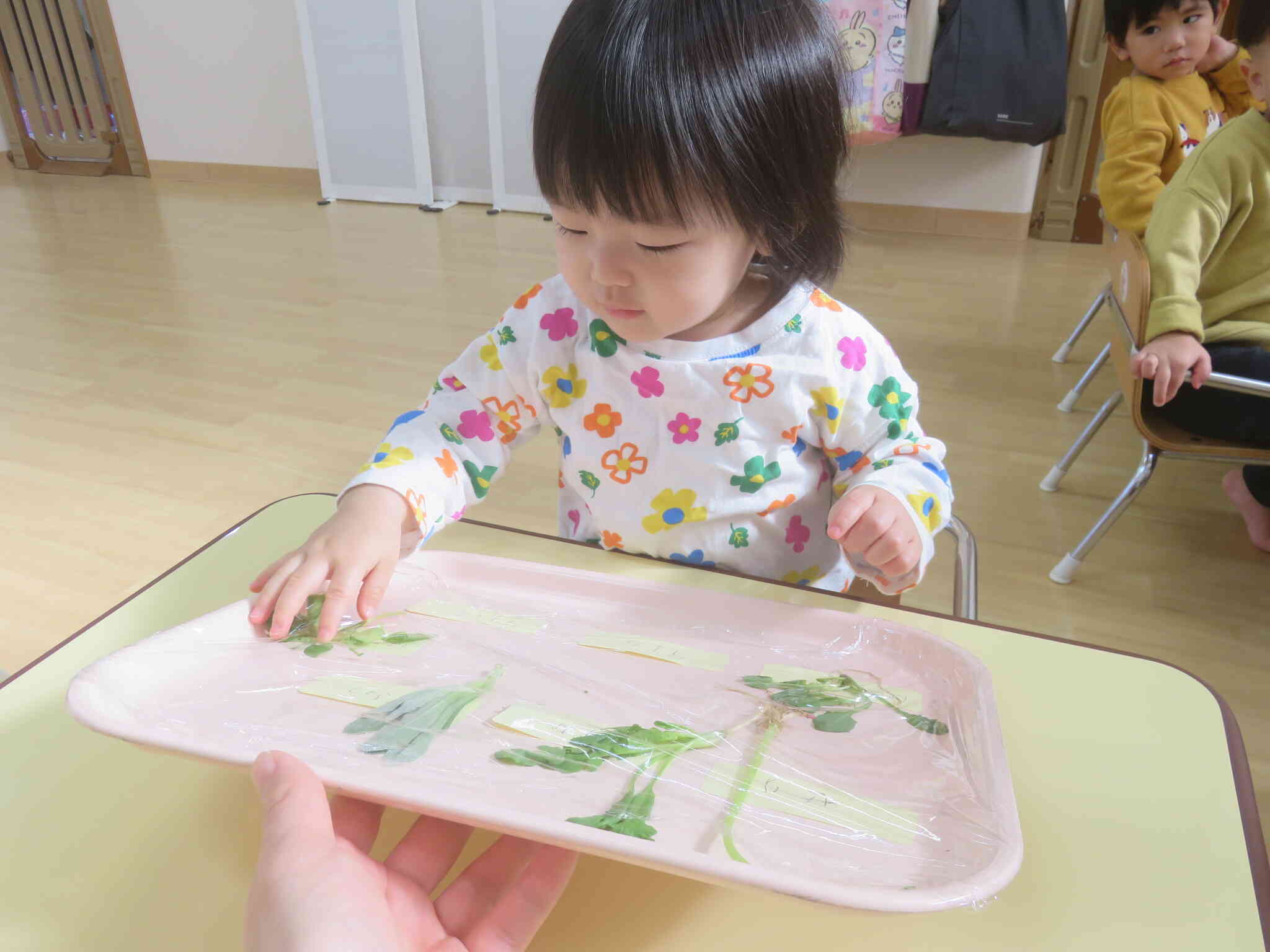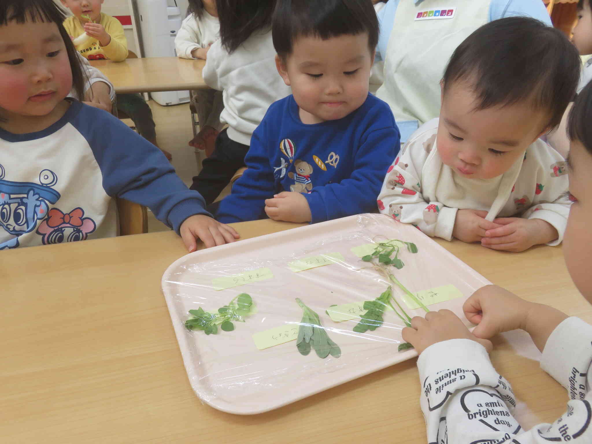 園では、食育で春の七草についてお話を聞きました。